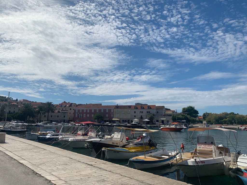 My first thought on disembarking is that this is reminiscent of a town you would sail to on Lago Di Garda or Lago Maggiore in Italy but this was Croatia and this place has its own unique charm. By now i was quite hungry so had to pick which of the assortment of quayside cafes took my fancy. I finally found one that seemed up satisfy and kudos for the canopy to keep the sun off of my already tingling head. I ordered ground beef served on local bread with cheese and rocket salad. I expected a burger like concoction but what came was closer to a pizza with Bolognese sauce and mozzarella with some rocket. Looked amazing. Bonus point for the rocket as it’s first green to adorn my plate this holiday thus far.