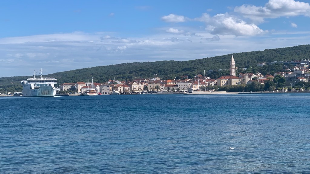 Made it! Now soak it up. Relax before heading back. I check the time and it’s 1510 so time to head back for the ferry you can see arriving from Split in the photo. It’s not that far will take 40 minutes or maybe less as I won’t be stopping to massage the offers from the massage rooms or take as many photos. I arrive back on the promenade to hear the ferry blast it’s horn. Perhaps it’s heralding my arrival but it’s actually leaving!!! Wait it’s only 1547 so I make for terminal and discover that it’s 1545 the ferry leaves. I had read the times as the timing of the ferry leaving Split for the next scheduled departure at 1800! 1800 another 2 hours to kill. I decide to treat myself to an ice cream to make peace with myself I misread the timetable.