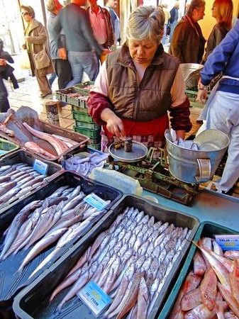 It was much quieter today perhaps all the Americans had left and the next plane load hadn’t arrived yet. Was still enough hustle and bustle to create an ambiance. I didn’t really know what I wanted to do today but I know I wanted it be more relaxing than yesterday’s excursion. So I just wandered and let my feet decide the itinerary. Without even trying the fish market and street stalls were first sights for today. The other stalls sold every from t-shirts to olive oil and most things in between in a Petticoat Land meets Billingate type area where one nostril smelt lavender from the soap stall and the other was fixated by Catch of The Day which seemed to be Sea Bream today.