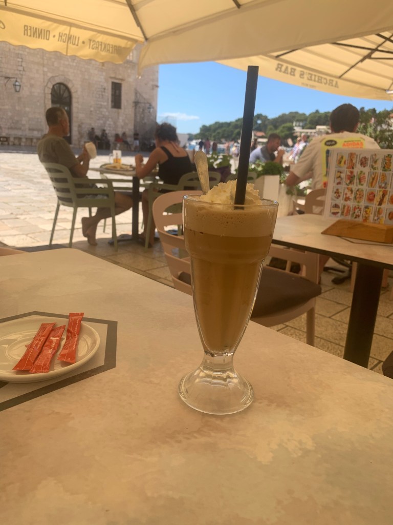 I’m fast running out of superlatives to describe these quite charming spots in and around Split and the surrounding areas. First thing that sprung to mind on Hvar was wow. Hvar itself is a pretty big island but I’ll be spending most of my time in and around the town rather than laying on the beaches dotted around other parts of the Island. Again the promenade linking boat terminal and town centre is awash with eateries and bars. I decide to grab an ice coffee to make firm my plans for the close to 6 hours I have here.
